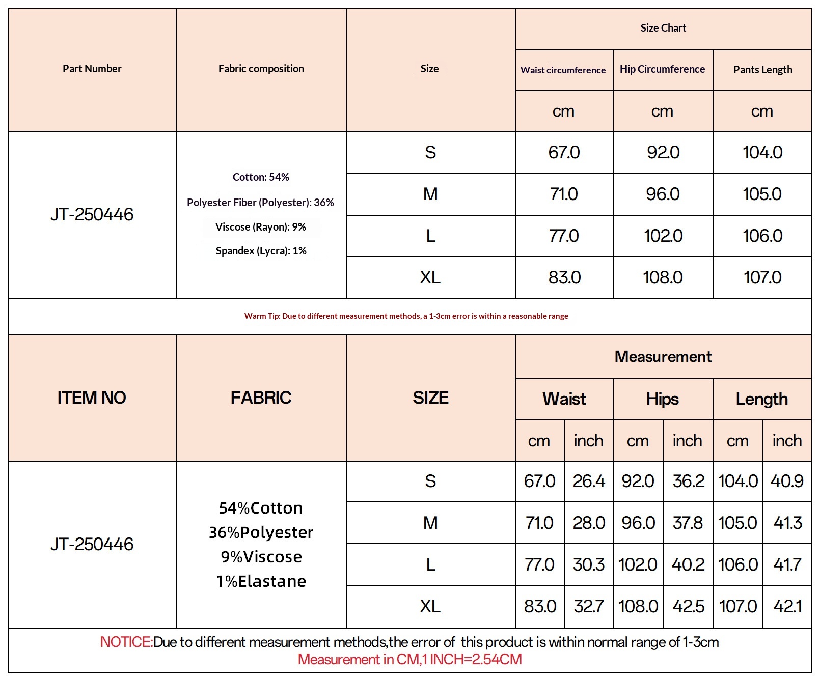 Sizes: S, M, L, XL