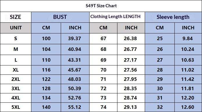 Sizes: S, M, L, XL, 2XL, 3XL, 4XL, 5XL